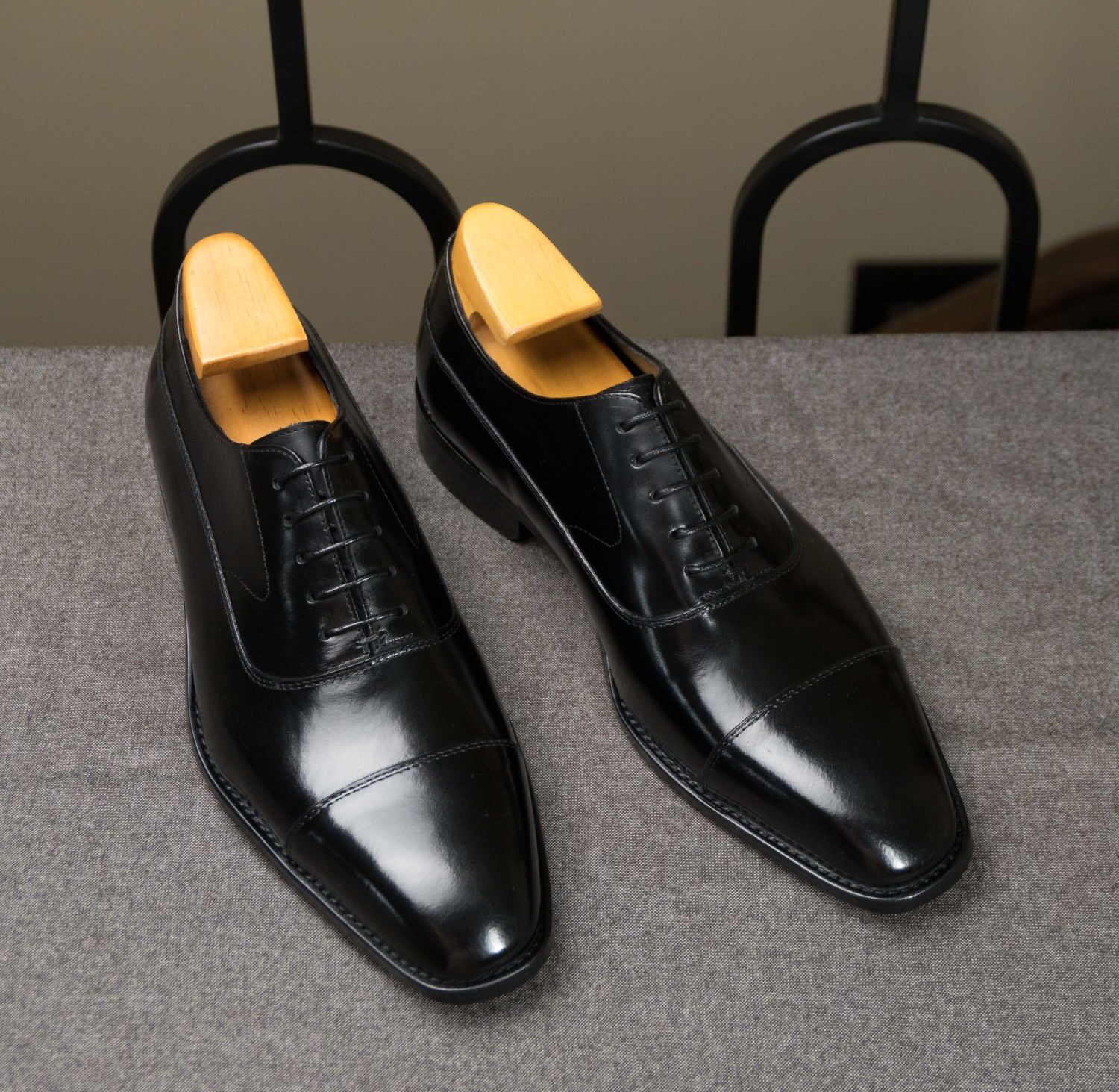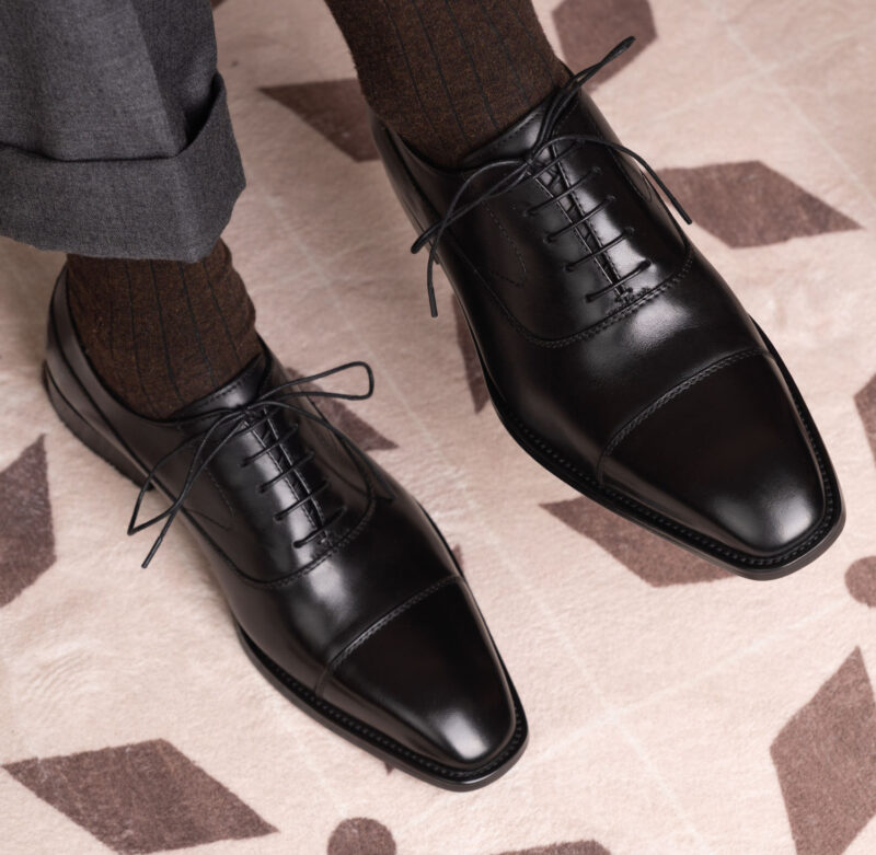 Square-Toe Triple-Stitched Black Oxford