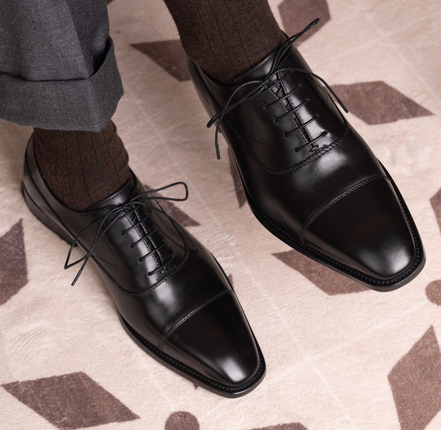Crafted with precision detailing and a contemporary square toe, these Oxfords feature a classic three-part upper construction for refined structure and timeless appeal.
