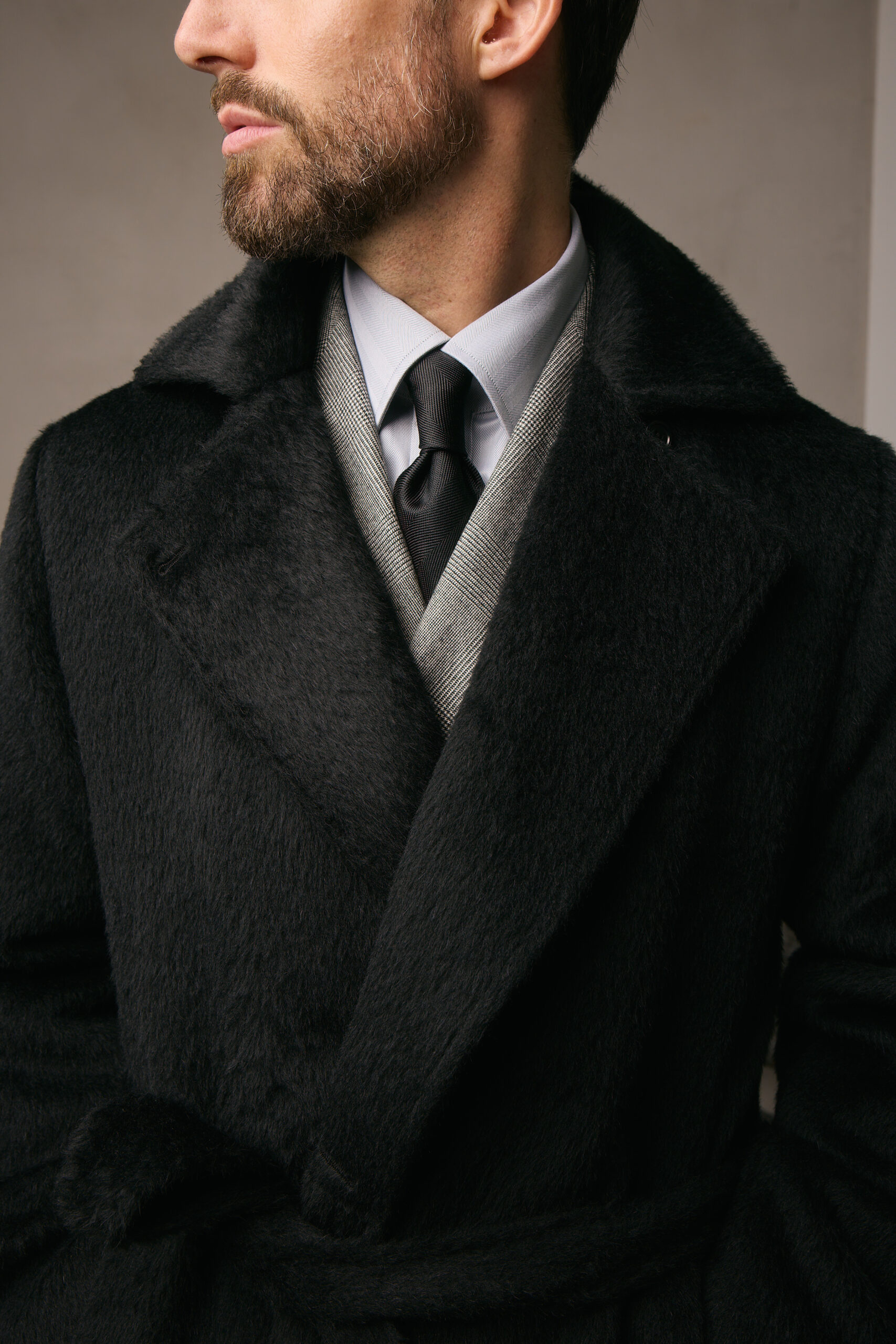 Unisex overcoat with a peak lapel and double-breasted front (two buttons). Clean silhouette with three-panel body construction, concealed front pockets with bar tacks, and 0.8cm top stitch detailing throughout. Fully lined, no sleeve vents, with a real buttonhole on the right lapel. Understated yet refined, easy to match for various looks.